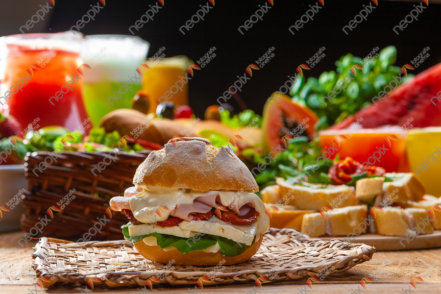 O uso de lentes na fotografia de alimentos define seu estilo. Trabalho sempre com 3 lentes, angulares 16mm 2.8, macro 100mm 2.8 e tele 85mm 1.8, costumo alternar entre elas, dependo do alimento e o que desejo valorizar. Tem coisas que você precisa mostrar a face frontal ao mesmo tempo mostrar o topo e o fundo, neste caso a angular é perfeita, no entanto em outros casos, quero ressaltar somente o que está na frente. Por exemplo, repare que na imagem 01 o sanduíche toma uma proporção maior em relação a mesa toda, vamos dizer que ele é o protagonista. Agora perceba, na imagem 02 temos ele como um coadjuvante pois divide a atenção com o restante. Essas situações podem ser exploradas brincando com a profundidade de campo focal (DOF em inglês)