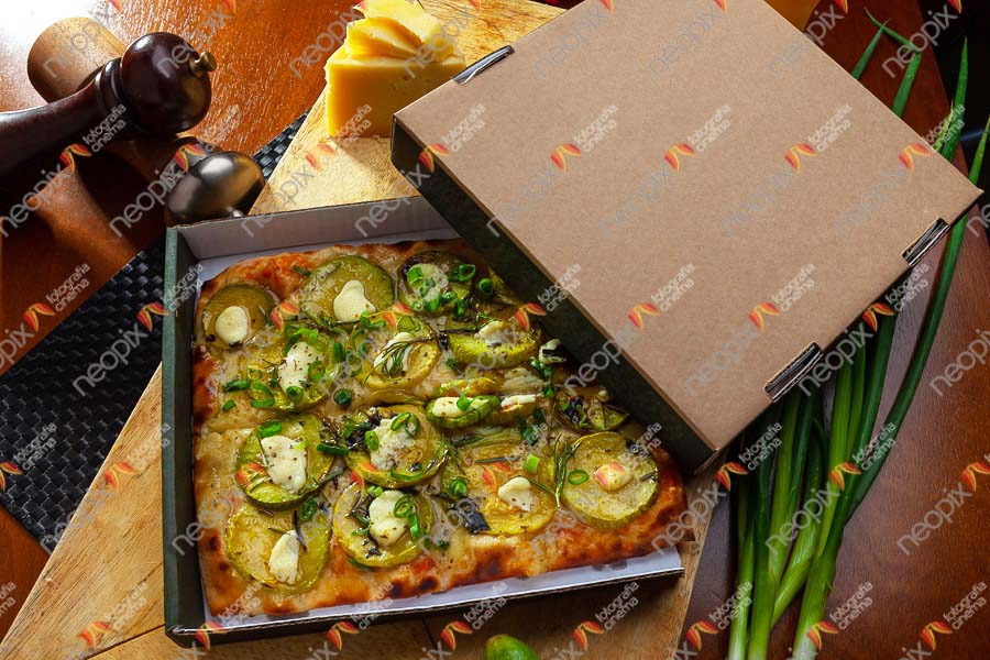 - Pizza de abobrinha vista 45º, usando uma meia angular, 28mm