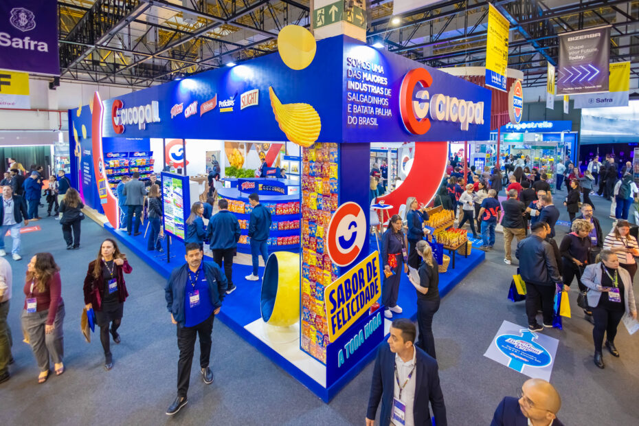 Fotografar uma feira no Expo Center Norte não é o mesmo que fotografar qualquer outro ambiente. Os pavilhões têm iluminação de sódio e LED mista, com temperaturas de cor variadas ao longo do dia. Os estandes competem visualmente por atenção, e o fotógrafo precisa saber se posicionar para valorizar cada marca sem interferir no atendimento ao cliente.
